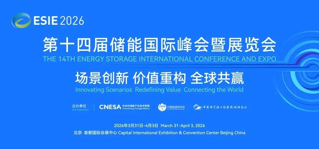3月31日至4月3日,全球储能产业年度盛会——第十四届储能国际峰会暨展览会ESIE 2026在首都国际会展中心隆重举...